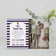 Nautische Navy & White Stripe Anchor Hochzeitsstif Folieneinladung