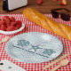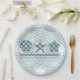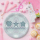 Ein inspiriertes Muster von stürmisch-türkisfarbenen Plätzen, die mit einem weißen Segelboot und Anker dekoriert sind, und die tiefmarineblauen Plätze, die mit blassblauen Chevrons und Wellen geschmückt sind, werden durch die weißen Stiche unterstrichen, um ein klassisches nautisches Ambiente zu schaffen. Zwei verschiedene Seestyles und eine klassische Muschel verdecken das Muster und fügen eine lustige finale Touch hinzu.