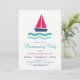 Nautical Sommer Beach House Party feiert Einladung. Das Restaurant lädt mit blauen, rosa, marinösen, türkisfarbenen Segelbooten und Wellen zum Verweilen ein.