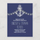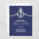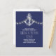 Navy nautische Save the Date Postkarte mit Vintagem Anker, Saitenleuchten. Ideal Save the Date für Wassersport, Strand und Hochzeiten in Urlaubsort