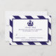 Diese RSVP Karten sind perfekt für alle Paare, die eine romantische Hochzeit am Meer planen. Das Design ist mit einem skurrilen marineblauen Schiffsmotiv auf einem nautischen Marinespiel und einem weiß gestreiften Hintergrund versehen. Das einfache Design kann für den Anzug Ihrer Veranstaltung personalisiert sein und ist die perfekte Antwortkarte für jedes nautische Beach-Party, einschließlich Brautparty, Verlobungen, Polterabende, Geburtstagspartys und vieles mehr.