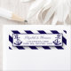 Diese Labels sind perfekt für alle Paare, die eine romantische Hochzeit am Meer planen. Das Design ist mit einem skurrilen marineblauen Ankermotiv auf einer nautischen Marine und einem weiß gestreiften Hintergrund versehen. Das einfache Design kann für den Anzug Ihrer Veranstaltung personalisiert sein und ist das perfekte Zubehör für jedes nautische Beach-Party, einschließlich Brautparty, Verlobungen, Polterabende, Geburtstagspartys und vieles mehr.