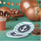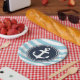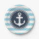 Diese Teller aus der nautischen Marine und hellblau gestreiften Papier sind perfekt für Ihr nautisches Party.
