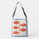 Fünf rote Fische schwimmen auf dieser nautischen Tasche.