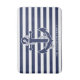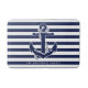 Nautische Geschenke - personalisierte Badematte mit marineblau Anker, weiß und blau Streifen und anpassbarer Text, wo Sie Familiennamen oder andere Texte hinzufügen können. Es ist eine mittelgroße Badematte und misst 20 Zoll x 30 Zoll.