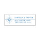 Klassische, aber moderne nautische Themen in der Längsrichtung Tinte Briefmarke. Die Briefmarke sind mit einer nautischen alten Kompass-Rose in einem Vintagen Stil mit dem Namen der Braut und Bräutigam auf der rechten Seite.