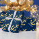 Nautische Verankerung mit Zickzack Navy-Yellow-Mus Geschenkpapier