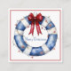 Diese niedlichen, an der Küste inspiriert Aufkleber sind mit einem nautisch-blauen und weißen Kranz mit einem roten Bogen und Weihnachtsbeleuchtung geschmückt. Personalisieren Sie mit Ihrer Auswahl an speziellen Urlaubstexten auf der Vorder- und Rückseite.