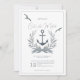 Erleben Sie Ihre Hochzeitsfeier mit diesem faszinierenden Anker und der einladenden Herald-Hochzeitseinladung, die mit anmutigen Möwen geschmückt ist. Dieses elegante Design mit klassischem Blau- und Graumuster und Wasserstreifen auf der Rückseite erinnert an einen zeitlosen maritimen Charme, der sich perfekt für die Hochseefans eignet.