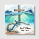 Ein hölzernes Kreuz erhebt sich über turbulente Ozeanwellen und symbolisiert Stabilität und Glauben inmitten des Chaos für eine Beerdigung oder Gedenkstätte. Alle Texte können bearbeitet werden.