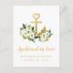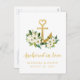 Die Thalassofeier zum Thema Küstenhochzeit bewahrt die Dattelpostkarte mit einem niedlichen und romantischen Goldanker, der sich in einem weißen Bohobouquet befindet und sich perfekt für eine Kreuzfahrt, einen Strand oder eine Hochzeit im Segelclub eignet. Die Hintergrundfarbe und die Schriftart können geändert werden - klicken Sie einfach auf "Weitere Anpassung.