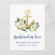 Die Thalassofeier zum Thema Küstenhochzeit bewahrt die Dattelpostkarte mit einem niedlichen und romantischen Goldanker, der sich in einem weißen Bohobouquet befindet und sich perfekt für eine Kreuzfahrt, einen Strand oder eine Hochzeit im Segelclub eignet. Die Hintergrundfarbe und die Schriftart können geändert werden - klicken Sie einfach auf "Weitere Anpassung.