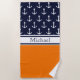 Modernes blaues Ankermuster Name Nautical Beach Handtuch. Sie können sich durch das Schreiben von Text (Name, Familienname, Monogramm..) personalisieren.