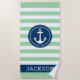 Nautischer Personalisierter Name Navy Green Stripi Strandtuch