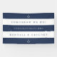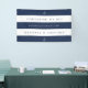 Herzlich willkommen bei Ihrem Probe-, Sommer- oder Küstenabend mit einem marineblau-weiß gestreiften Banner. Personalisieren Sie den Text in drei Zeilen mit zwei weißen Ankerabbildungen. Showdown mit "morgen wir tun! Glückwunsch [Name] und [Name]."