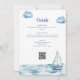 Nautische Baby-Shower-Einladung 'Baby on board', personalisiert mit Ihrem Namen und besonderen Datum. Mit Ihrem Registrierungs-QR-Code und den Details zur Veranstaltung auf der Rückseite. Entworfen von Thisisnotme©