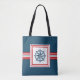Nautisches Design mit roten und weißen Streifen und Kompassdekoration in gestreiften Quadraten