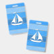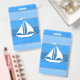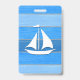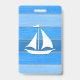 Nautisches Design mit Segelbootdekoration auf blau gestreiften und grauen Holzböden. Bitte beachten Sie, dass dies nicht aus Holz ist, es ist eine Holzgrafik.