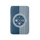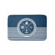 Nautisches Design mit nautischen Symbolen (Anker, Segelboot, Segelrad, Kompass) Dekoration auf weißem und marineblauen Streifen Hintergrund.