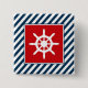 Nautisches Design mit Dekoration des Segelrads auf blau-weiß gestreiftem Hintergrund