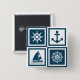Nautisches Design mit Segelrad, Segelboot, Kompass und Ankerdekoration in weiß-blau gestreiften Quadraten