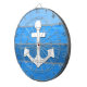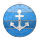 Nautisches Design mit Ankerdekoration auf blau gestreiftem und grauem Holzboden. Bitte beachten Sie, dass dies nicht aus Holz ist, es ist eine Holzgrafik.