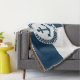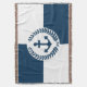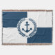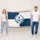 Nautisches Design mit Anker- und Lorbeerkraendekoration über blau-weißem geometrischem Hintergrund