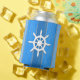 Nautisches Design mit Segelraddekoration auf blau gestreiftem und grauem Holzboden. Bitte beachten Sie, dass dies nicht aus Holz ist, es ist eine Holzgrafik.