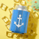 Nautisches Design mit Ankerdekoration auf blau gestreiftem und grauem Holzboden. Bitte beachten Sie, dass dies nicht aus Holz ist, es ist eine Holzgrafik.