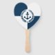 Nautisches Design mit Anker- und Lorbeerkraendekoration über blau-weißem geometrischem Hintergrund