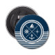 Nautisches Design mit nautischen Symbolen (Anker, Segelboot, Segelrad, Kompass) Dekoration auf weißem und marineblauen Streifen Hintergrund.