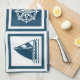 Nautisches Design mit Segelrad, Segelboot, Kompass und Ankerdekoration in weiß-blau gestreiften Quadraten