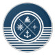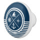 Nautisches Design mit nautischen Symbolen (Anker, Segelboot, Segelrad, Kompass) Dekoration auf weißem und marineblauen Streifen Hintergrund.