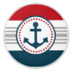 Schönes Design mit Ankerverzierung in runder Form auf blauem, rotem, grauem und weißem, gestreiften Hintergrund