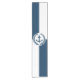 Nautisches Design mit Anker- und Lorbeerkraendekoration über blau-weißem geometrischem Hintergrund
