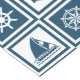 Nautisches Design mit Segelrad, Segelboot, Kompass und Ankerdekoration in weiß-blau gestreiften Quadraten