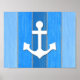 Nautisches Design mit Ankerdekoration auf blau gestreiftem und grauem Holzboden. Bitte beachten Sie, dass dies nicht aus Holz ist, es ist eine Holzgrafik.