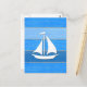 Nautisches Design mit Segelbootdekoration auf blau gestreiften und grauen Holzböden. Bitte beachten Sie, dass dies nicht aus Holz ist, es ist eine Holzgrafik.