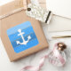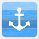 Nautisches Design mit Ankerdekoration auf blau gestreiftem und grauem Holzboden. Bitte beachten Sie, dass dies nicht aus Holz ist, es ist eine Holzgrafik.