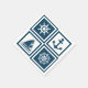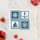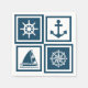 Nautisches Design mit Segelrad, Segelboot, Kompass und Ankerdekoration in weiß-blau gestreiften Quadraten