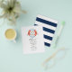 Whimsical nautische Hochzeitseinladung mit eleganter Kalligrafie, die auf Ihre Veranstaltungsspezifikationen zugeschnitten ist. Umschläge sind nicht enthalten. Für dickere Einladungen mit Umschlägen und passenden Produkten zum selben Thema lesen Sie bitte die unten stehende Kollektion.