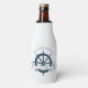 Eine schicke Sommerkapitän-Flasche cooler für Ihre Strandkreuzfahrt auf dem Ozean mit einem marineblauen Bootslenkrad. Dieses nautische Design eignet sich perfekt für einen Familienausflug zum Meer oder für die Werbung für Ihr Bootgeschäft. Personalisieren Sie auf der Vorder- und Rückseite.