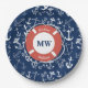 Nautisches Mongram Navy Blue Anchor Muster Pappteller