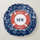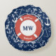 Nautisches Mongram Navy Blue Anchor Muster Rundes Kissen
