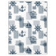 Seamless thematied design mit Segelboot, Kompass, Anker- und Segelraddekoration auf blau-weißem geometrischem Hintergrund