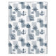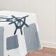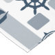 Seamless thematied design mit Segelboot, Kompass, Anker- und Segelraddekoration auf blau-weißem geometrischem Hintergrund