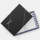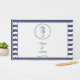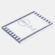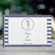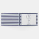 Dieses Design ist mit einem marineblau-weiß gestreiften Hintergrund versehen. Die Oberseite des Covers ist mit einem blauen Seepferd versehen, das von einem Kreis von blauen Punkten umgeben ist. Vorlagenbereiche sind für Sie vorgesehen, um die Namen der Braut und des Bräutigams sowie das Hochzeitstermin hinzuzufügen.