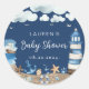 Nautica Navy Babydusche rund Aufkleber mit einem nautischen Thema mit Meer, Muscheln, Booten und Leuchtturmkunst