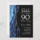 Navy blau, schwarz und silber agate überrascht 90. Geburtstag Einladung. Elegantes modernes Design mit königsblauen Aquarellfarben, marmorgeode Hintergrund, Imitats Glitzer Silber und Typografie Drehbuch Schriftart. Die trendige Einladungskarte eignet sich perfekt für eine stilvolle Damenfeier. Gedruckte Zazzle-Einladungen oder Sofortdownload digitaler Druckvorlage.