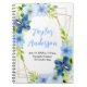 This fun and whimsical notebook features watercolor baby blue and navy blue flowers with foliage on a gold geometric frame. The text combines handwritten script and serif fonts for a stylish and modern look. It can be personalized with your baby's birth stats, such as name, size, date and time of birth, or if you would like to give it as a shower gift you are able to edit and remove text.